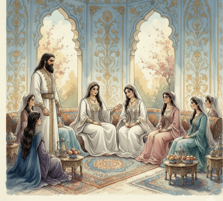 Sono Ali Samir Al Masiz. Dal mio palazzo turco guardo mia moglie organizzare il matrimonio di nostra figlia — occhi scuri, bellissima. Un momento di pienezza.