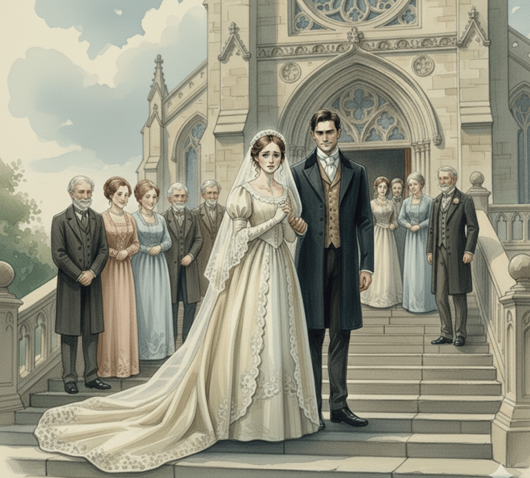 È il 1800. Ho ventiquattro anni e sono a un matrimonio — il mio. Sposo un conte inglese. Vestito ricco e lunghissimo, lo strascico è benessere esibito. Intorno a me sono tutti felici.