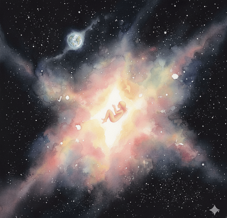 Vengo risucchiato delicatamente verso l'alto, nello spazio. Sono solo un'anima — prima raggomitolata su sé stessa, poi distesa, poi improvvisamente investita, pervasa, colmata di un amore caldo, pieno e inspiegabile. Un amore che non ha parole.