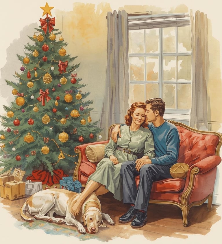 È il pomeriggio del giorno di Natale. L'abete addobbato ci fa l'occhiolino, mentre io e mia moglie ci scambiamo tenerezze, un po' brilli dopo il pranzo dai miei.