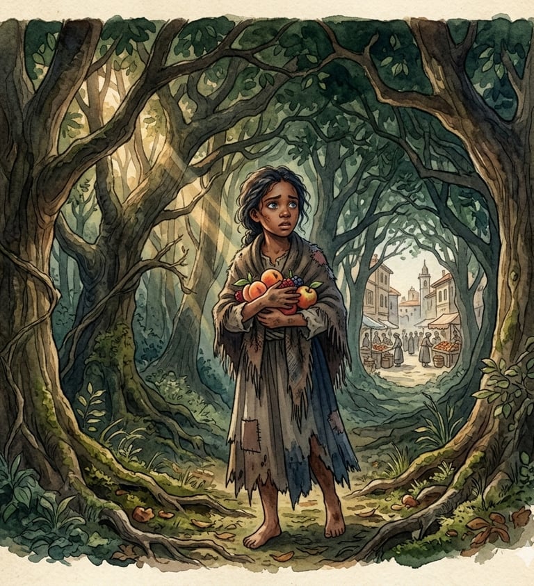 Vestita di stracci, sono corsa fino al bosco, dove i rami si sono chiusi dietro di me come una porta. Mi sono persa.